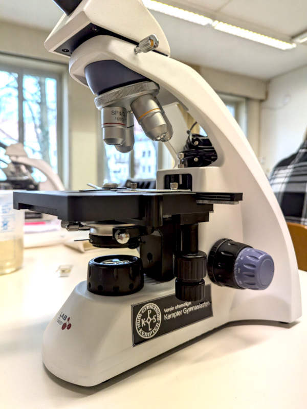 Die Schule besitzt einen Klassensatz neuer Mikroskope, welche Dank einer Spende des Vereins "Ehemaliger Kempter Gymnasiasten" im Januar 2024 angeschafft werden konnten.