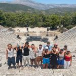 Am nächsten Morgen ging es weiter zum Kanal von Korinth – ein Meisterwerk der Ingenieurskunst, das wir bei einem kurzen Zwischenstopp bestaunten. Natürlich hatte Herr Schulze auch hier interessante Anekdoten parat. In Epidauros bewunderten wir anschließend das größte erhaltene Theater der Antike, dessen beeindruckende Akustik auch heute noch weltweit ihresgleichen sucht. Herr Dieter testete diese eindrucksvoll, indem er eine Münze fallen ließ und ein Stück Papier zerriss, was man sogar in der letzten Reihe des Theaters hören konnte. Am Abaton führten unsere Lehrer sogar ein kleines Rollenspiel vor. Den Nachmittag und die Nacht verbrachten wir im idyllischen Badeort Tolo, wo wir uns am schönen Strand ausruhten. Die Stimmung war ausgelassen, das Wasser warm und der Sonnenuntergang malerisch.