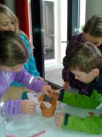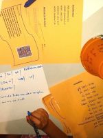 Jede der sieben Gruppen findet Tonscherben, auf denen ein griechischer Text geschrieben ist. Ton diente früher als Schreibmaterial. In der „Werkstatt“ fixieren die „Bibelwissenschaftler“ die Tonscherben so, dass der griechische Text lesbar wird. Vermutlich handelt es sich um einen Vers aus der Bibel. Das Neue Testament wurde nämlich ursprünglich auf Griechisch verfasst.
