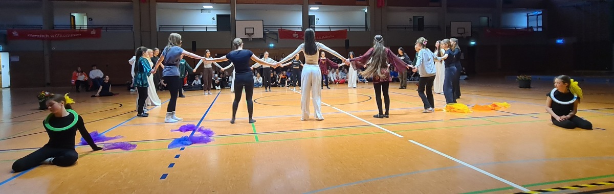 Die Tanztheatergruppe setzte sich aus der AG Tanztheater und Bewegungskünste sowie aus allen Schülerinnen der Sportklasse 8ad des Carl-von-Linde-Gymnasiums Kempten