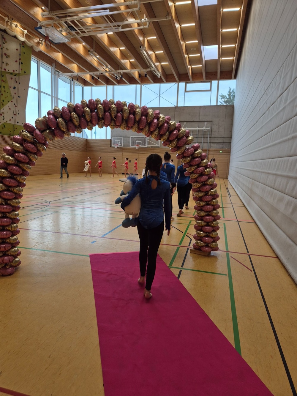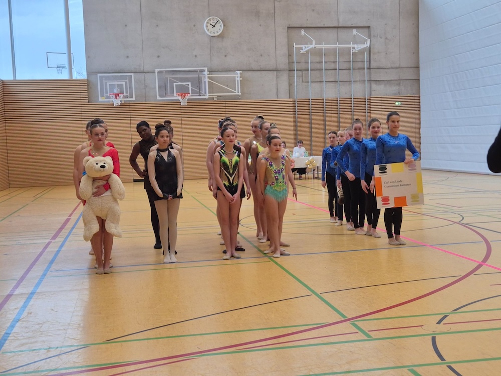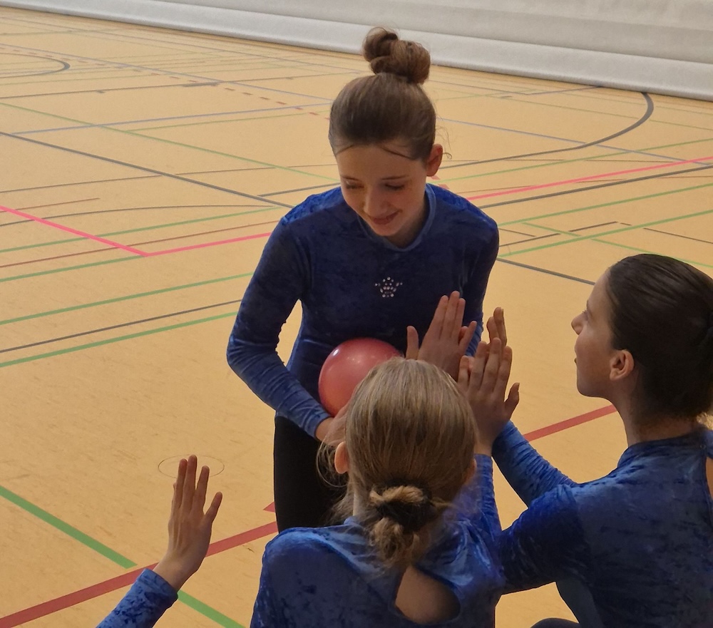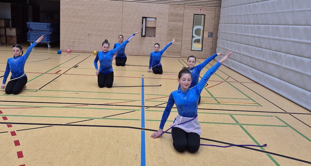 Mit viel Engagement und großer Vorfreude nahm unser Schulteam am Bezirksfinale der Rhythmischen Sportgymnastik im Rahmen des Schulsportwettbewerbs „Jugend trainiert für Olympia“ teil. Die lange Vorbereitungszeit auf den Wettkampf, auch außerhalb der regulären Schulzeit, verlangte den Schülerinnen viel Konzentration, Disziplin und Teamgeist ab. Ziel war es, die Bewegungsabläufe nicht nur zu präzisieren, sondern möglichst harmonisch und ausdrucksstark zu präsentieren.