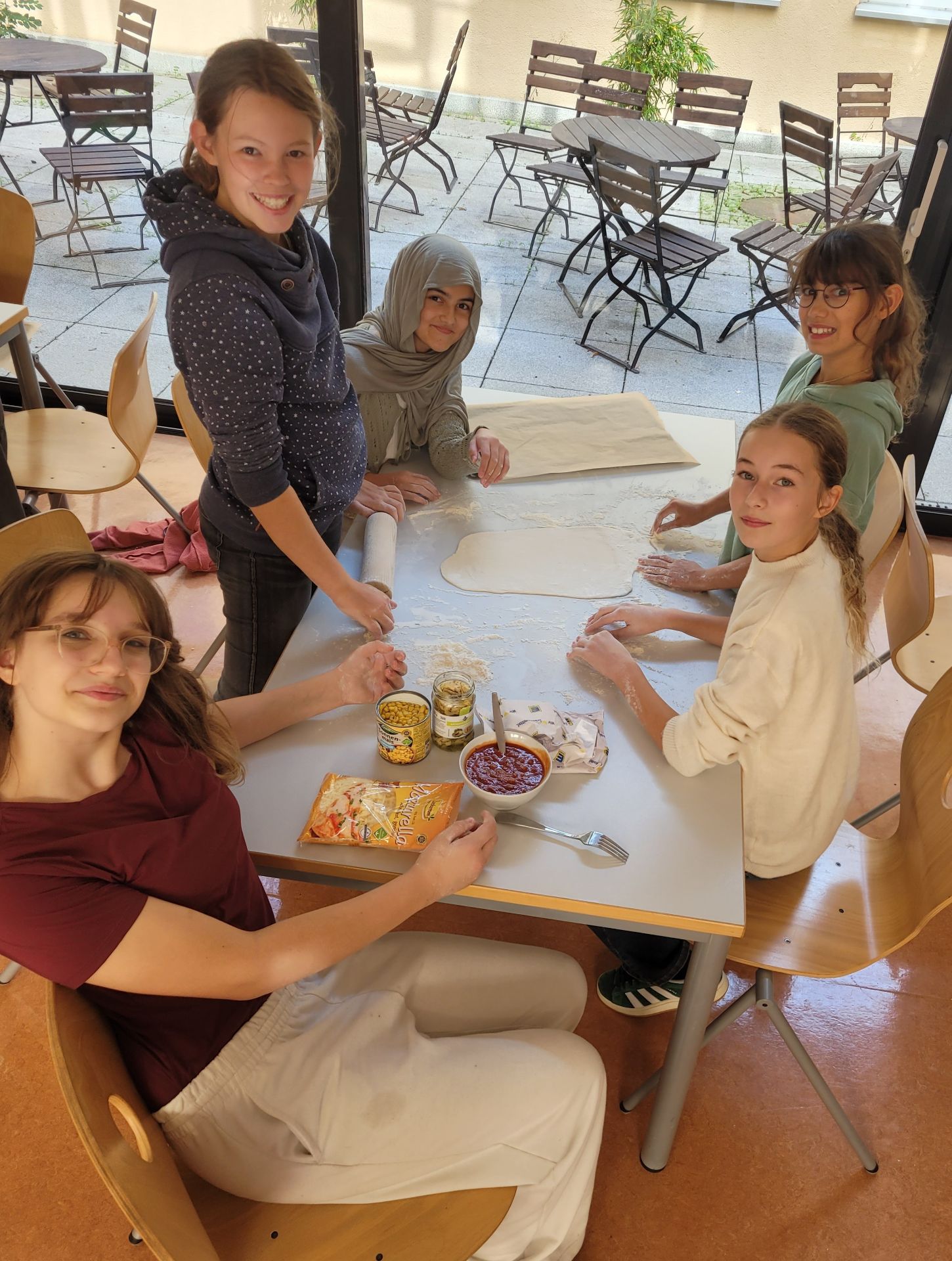 Seit wann duftet es auch am Freitagnachmittag herrlich aus der Schulküche? Seit es den Wahlkurs Kochen und Backen gibt. Hierbei treffen sich regelmäßig Schülerinnen und Schüler aus den Jahrgangsstufen 6 bis 9, um gemeinsam den Kochlöffel zu schwingen und die Teigrolle zum Glühen zu bringen.