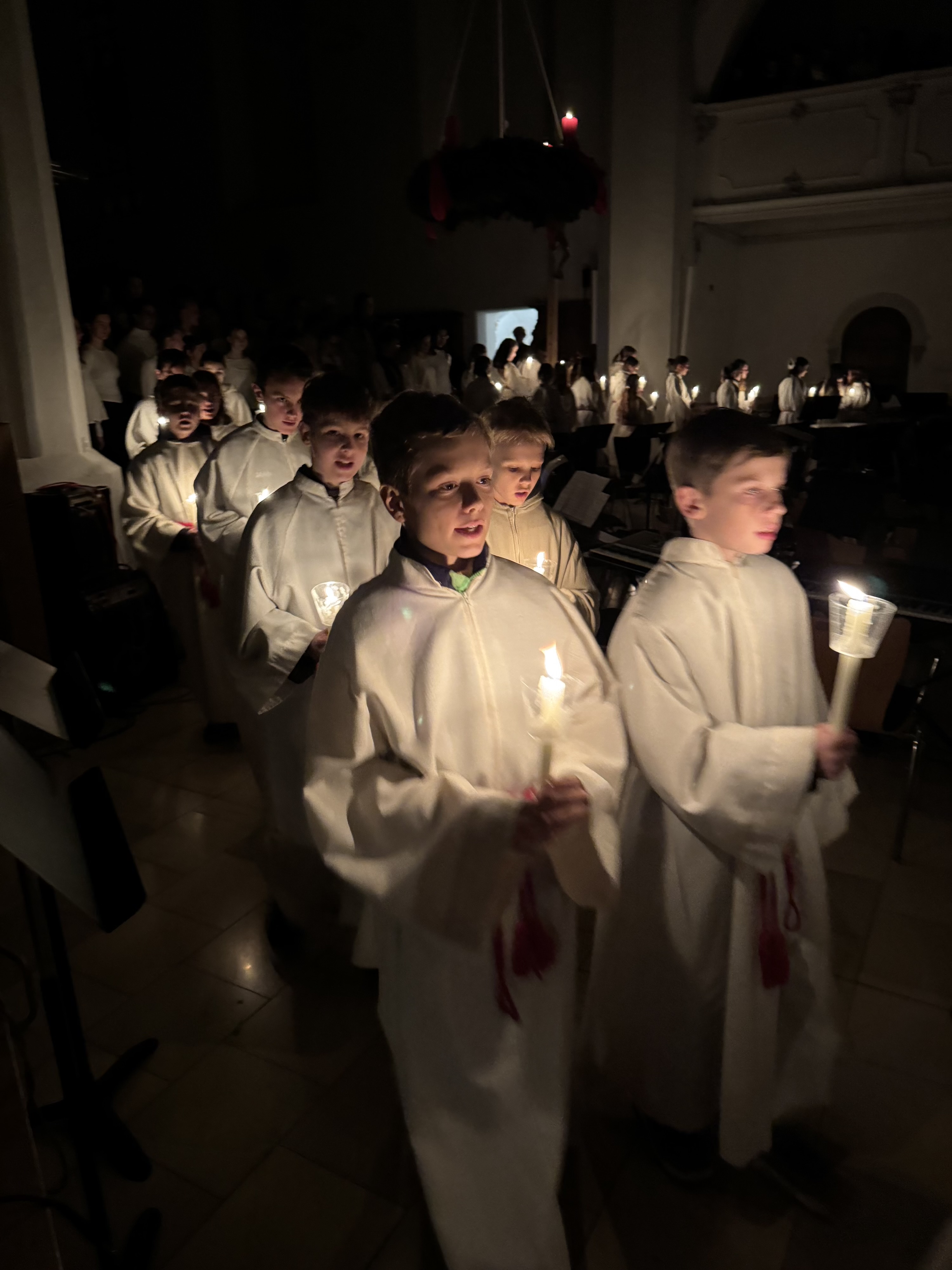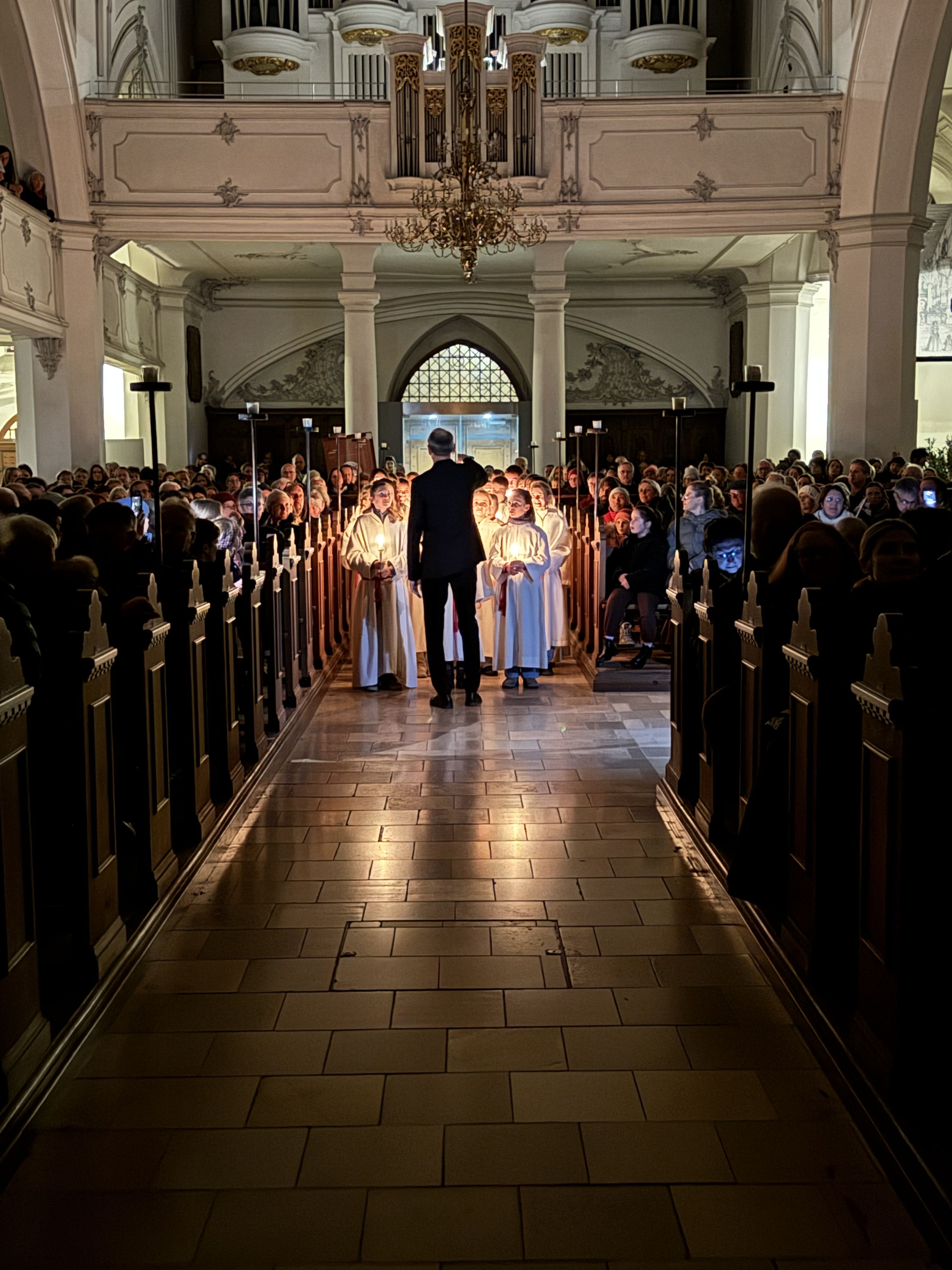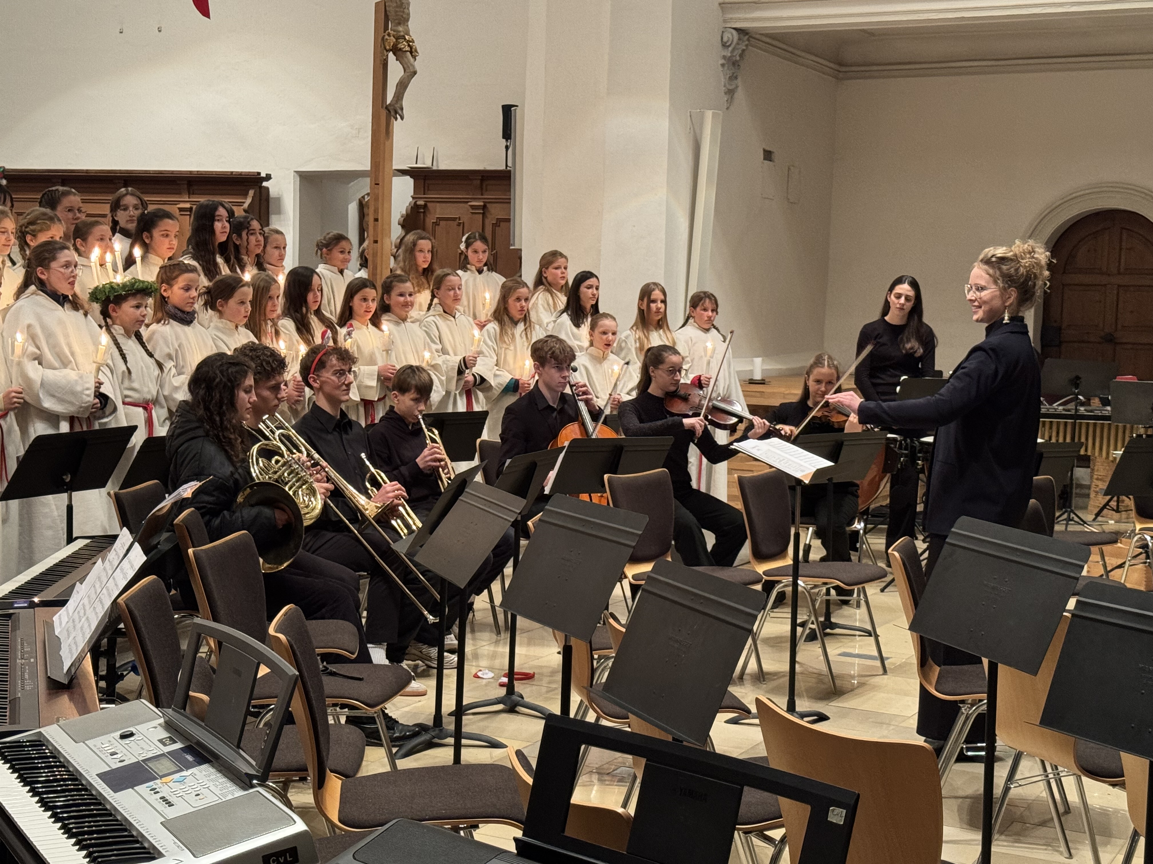 Mit einem beeindruckenden Weihnachtskonzert versetzte das Carl-von-Linde-Gymnasium Kempten die vollbesetzte St.-Mang-Kirche in festliche Stimmung. Über 200 musizierende Schülerinnen und Schüler zeigten in den beiden Orchestern, in den drei Chören und in der Bigband außergewöhnliche musikalische Leistungen. Besonders hervorzuheben ist die herausragende Leistung von Viktoria Lukschandel (8c), welche mit Buxtehudes Präludium und Fuge in C - Dur an der Orgel brillierte.