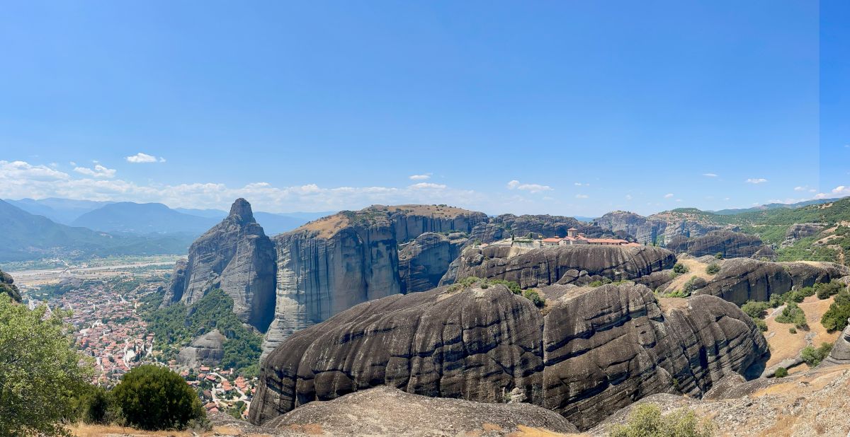 Am 13. Juli legten wir frühmorgens in Igoumenitsa im Nordwesten Griechenlands an. Unser griechischer Busfahrer Dimitri – stets freundlich und mit einem charmanten Lächeln auf den Lippen – erwartete uns bereits. Unser erstes Ziel: die atemberaubenden Meteora-Klöster. Wie Steinriesen ragen sie auf in den blauen Himmel, gekrönt von stillen, ehrwürdigen Klöstern, in denen Mönche seit Jahrhunderten leben. Bei einer spannenden Führung erfuhren wir in einer besonderen Atmosphäre viel über das enthaltsame Leben dort und die bewegte Geschichte dieses spirituellen Ortes.