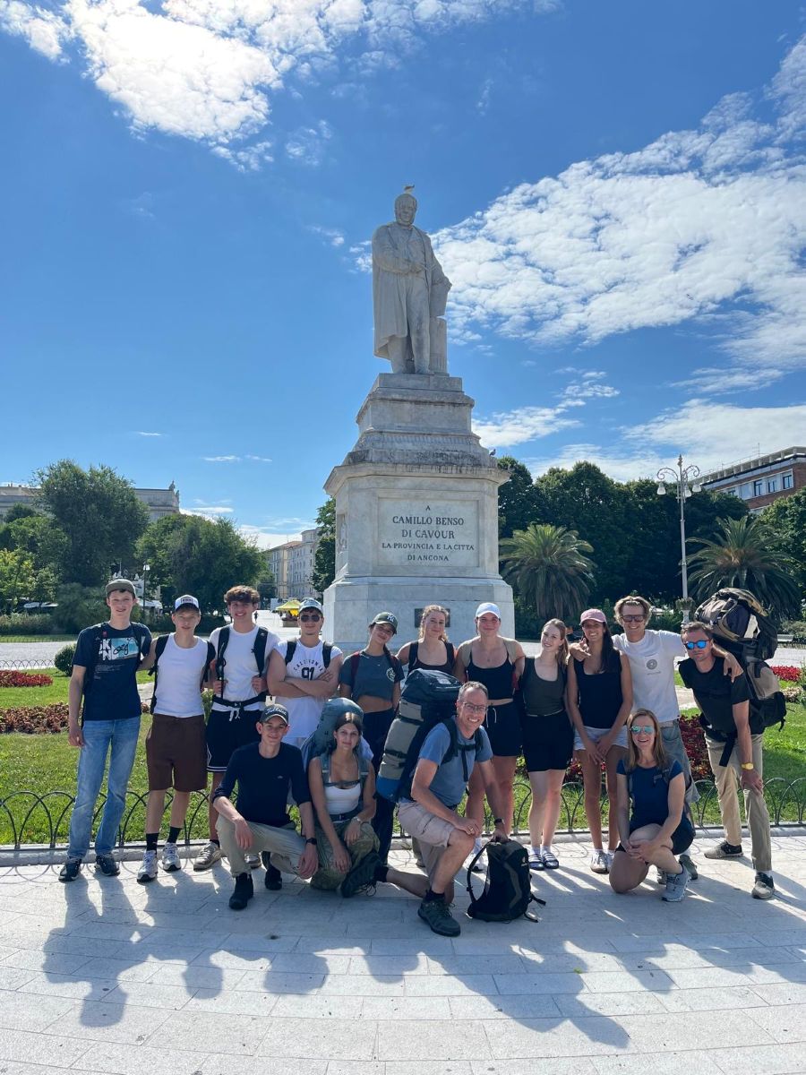 Am 11. Juli startete die große Fahrt am Kemptener Hauptbahnhof. Die Rucksäcke geschultert, die Vorfreude riesig. Mit der Bahn ging es zunächst nach Ulm, wo das Warten auf den Flixbus nach Ancona erstaunlich kurzweilig war. Mit Kartenspielen, dem allseits beliebten „Imposter“ und jeder Menge Gelächter vertrieben wir uns die Zeit.