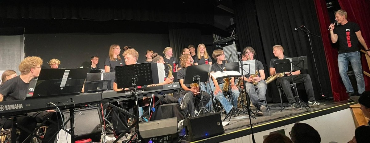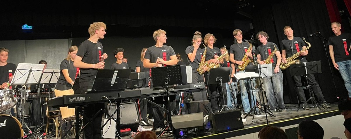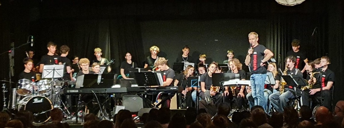 Die Antwort lautet: Ja! Schnell wich die Aufregung einer großen Spielfreude, welche das Publikum, aber auch die Band selbst mitriss. Trompeten, Posaunen, Tenorhörner, Klarinetten, Saxophone, Schlagzeug, Gitarren, Bass und Klavier entwickelten einen fulminanten Sound. Mit vielseitigen Stücken und mutigen Soli war für Abwechslung gesorgt.