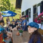 Der zweite Tag (19.07.2022) war heiß und noch einmal heiß, aber es ging auf den Gipfel des Beslers, wo uns dank des schönen Wetters ein grandioser Ausblick auf die Allgäuer Berge möglich war. Annika Gnadl nannte uns zusammen mit Frau C. Heinrich erst einmal alle Gipfel und so bekamen wir den nötigen Überblick zum Gipfelstand. Wir sahen dann bald Gesteinsdecken und -falten und die ganze Tektonik vom Vorland bis zum Allgäuer Hauptkamm. Auch die Formenbildung durch die Gletscher der Eiszeiten war beeindruckend klar am Kessel von Oberstdorf abzulesen. Die Sonne meinte es denn aber etwas zu gut mit uns, sodass wir nicht das ganze Programm geschafft haben. Dafür waren wir aber alle wieder gut herunter vom Berg und immer noch voll dabei, vor allem als Frau C. Heinrich allen das so sehr ersehnte kühle Getränk spendierte.