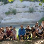 Der Geographiekurs der Q11 (= Geologiekurs der Q12 nächstes Schuljahr) fuhr an einem sonnig-heißen Tag unter schattigen Uferbäumen bis an die Prallhänge der Iller bei Ajen (Hirschdorf) und von dort wieder zurück bis zum Hermannstobel in Kempten-Eich. Zwischenstation war die Burghalde bzw. Engelhalde. Damit streiften wir durch fast die ganzen wesentlichen Elemente der Molasse, wie sie im Gebiet unserer Stadt beispielhaft zu sehen sind. Dass dabei auch eine Einführung in die geologischen Zeiträume passierte, haben wir dem Rauschen der Iller zu verdanken: Jede Welle erschien uns wie Millionen von Jahren – und schon wieder vorbei! Es gab zwei Höhepunkte auf dieser Tour: Aurelia Mößnang fand beim Kieselstein-Bestimmen einen wunderschönen, ja museumsreifen sogenannten Assilinen-Grünsandstein, ein heute nur noch an einer kleinen Stelle im Allgäu anstehendes, prächtiges Gestein, das aber als Kiesel in der Iller ab und zu noch zu finden ist. Jedoch in dieser Qualität ausgesprochen selten! Das zweite Highlight war der spontane und ehrliche Ausruf beim Gruppenfoto vor den Steilwänden bei Ajen von Sophie Brunk: „Man muss doch den Stein sehen!“ Die Sorge, vor lauter nur ganz kurz auf dieser Erde weilender Menschen würde man das wichtige und fast ewig beständig anmutende Gestein im Hintergrund nicht sehen, rührte alle anwesenden neuen oder alten Geologen im Herzen. Die Fahrt beendeten wir dann auch entsprechend im wissenschaftlich so bedeutenden „feinen Rest langer Zeiten“ (Ton-Gestein) und fanden auch den Schlamm im Bach dank des neuen Blickes auf unsere Heimat interessant.