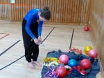 Mit 2 Mannschaften aus dem Wahlfach Rhythmische Sportgymnastik startete das CvL unter der Leitung von Fr. Brunner in der Wettkampfklasse IV . Die 2 Teams des Carl-von-Linde-Gymnasium stellten die jüngsten und einzigen Teilnehmer der Stadt Kempten am diesjährigen Bezirksfinale in der RSG in Elchingen. Auf einer 12x12m Fläche zeigten Sie einzeln ihre Pflichtübungen mit Ball und Seil auf Musik . Besonders für das Team der 5.Klässlerinnen stellte dies eine große Herausforderung an Mut, Konzentration , Körper- und Gerättechnik dar. Umso mehr freuten sich die Gymnastinnen, die zum ersten Mal dabei waren, über ihren 5. Platz . Das Team 1 der 6.Klässlerinnen konnten dagegen schon ihre Erfahrungen aus dem vorherigen Jahr ausspielen. Es gelang Ihnen bravourös sich gegen eine große Konkurrenz durchzusetzen und so durften sie am Ende auf dem Siegertreppchen ihre Medaille entgegennehmen.