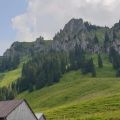 Hier stand nun ein Gang ins Gelände, genauer gesagt auf den Besler bei Fischen auf dem Programm. Wir starteten gut gelaunt und voller Hoffnung, dass die Wolken sich verziehen würden, am Bahnhof und machten uns schon bald vom Riedbergpass aus auf, den Besler zu erklimmen. Tatsächlich ist das kein besonders hoher Berg, aber er bietet eine geologische Besonderheit, da sein Gipfel aus Schrattenkalk besteht, also aus genau dem Gestein, dass auch den Hohen Ifen und die Gottesackerwände bildet. Die eindrucksvollen Schratten oder Karren, die sich durch Verwitterung in diesem Kalk bilden, kann man aber auch am Besler bewundern, denn er gehört ebenfalls zum „Helvetikum“, also dem nördlichsten Ablagerungsraum, aus dem die Alpen hervorgegangen sind. Der Besler bietet jedoch nicht nur dieses besondere Gestein, von seinem Gipfel aus hat man außerdem einen grandiosen Blick auf alle weiteren wesentlichen Gesteinszonen der Allgäuer Alpen und das Oberstorfer Tal mit all seinen Seitentälern. Und das ist das Schöne, wenn man selbst im Gelände unterwegs ist – man hört nicht nur vom Gestein oder von bestimmten Zonen in den Bergen, man kann sie direkt sehen und vergleichen und sogar anfassen, so lernt man doch fast von allein! Nagelfluh, Flysch, Aptychenkalk und Hauptdolomit, Erosion, Verwitterung, die Kreidezeit, das Mesozoikum und noch einiges mehr sind für uns jetzt keine abstrakten Begriffe mehr und wie eine glazial überformtes Tal aussieht, wissen wir nun auch.