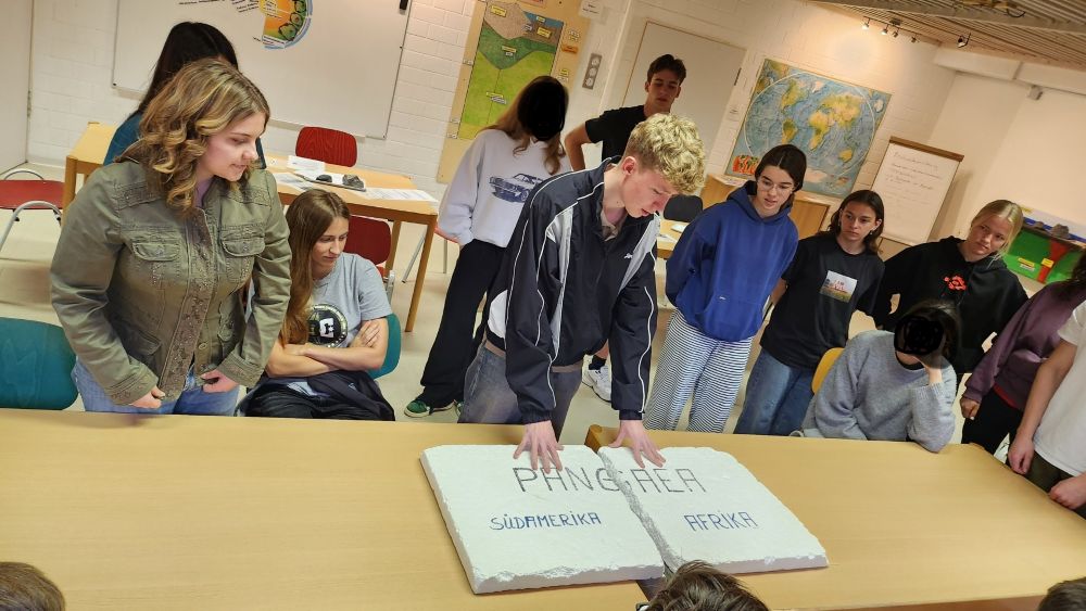 Wer in die Oberstufe kommt, muss sich vielfach entscheiden, z.B. auch, ob man in der Jahrgangsstufe 13 Geologie wählt. Genau das haben 19 Schülerinnen und Schüler getan und deshalb ging es mit ihrer Kursleiterin Frau Heinrich und Herrn Brunschweiger für 3 Tage an die KTB (Kontinentale Tiefbohrung) nach Windischeschenbach. Warum gerade in die Oberpfalz? Nun, zum einen findet sich hier das tiefste offene Bohrloch in die Erdkruste, ganz 9101m geht es hinunter, zum anderen können die Schülerinnen und Schüler in diesem Geo-Zentrum unter fachkundiger Anleitung in einem großen Schülerlabor und im Gelände ganz praktisch geologische Grundlagen einüben. Steine zerschlagen, tektonische Puzzle lösen, Salzsäure auf Steine träufeln, im Gelände mit Karten arbeiten, Boden zerkrümeln und noch einiges mehr kann man auf dieser Fahrt erleben, erlernen und v.a. erfahren.