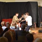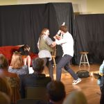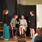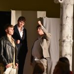 Dieses Stück über starke Frauen, das den Fokus auf die Figuren legt, allesamt unter vollem Körpereinsatz – Kämpfe, Schreie, ein Kniefall, etc. – und mit viel Spielfreude von den Schülerinnen und Schüler gespielt, machten die Aufführung zu einem vollen Erfolg. Ernste, nachdenkliche Momente wechselten sich ab mit spannenden oder auch vertrauensvollen, sodass sich das Publikum von Anfang bis Ende ausgezeichnet unterhalten sah. Vielen herzlichen Dank an Herrn Babel und sein Technik-Team für die Ausleuchtung und den Ton bei der Aufführung, an das Hausmeisterteam für die unaufgeregte und kompetente Hilfe bei allen größeren und kleineren Problemen, an Emily Blank für die Übernahme einer Statistenrolle, an Annabel Eich für das wunderbare Programmheft, die Plakate und die Unterstützung bei der Regie und natürlich an euch, liebe Schauspielerinnen und Schauspieler der Q12 für die vielen engagierten, abwechslungsreichen und immer lustigen Proben!