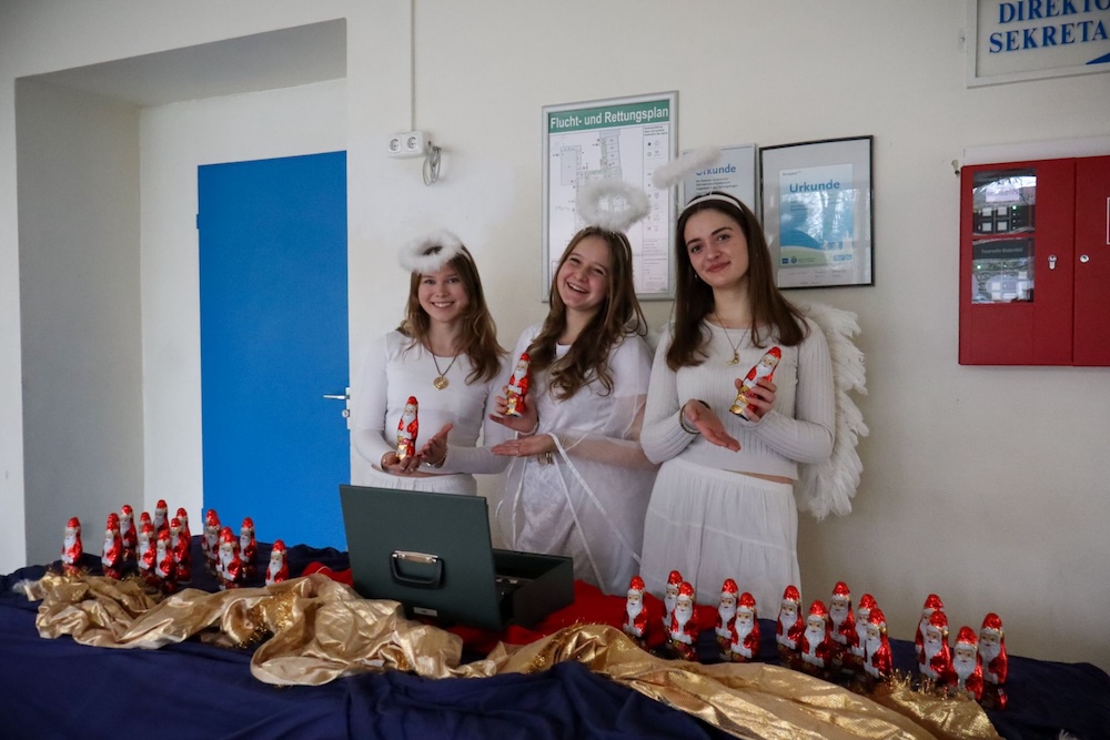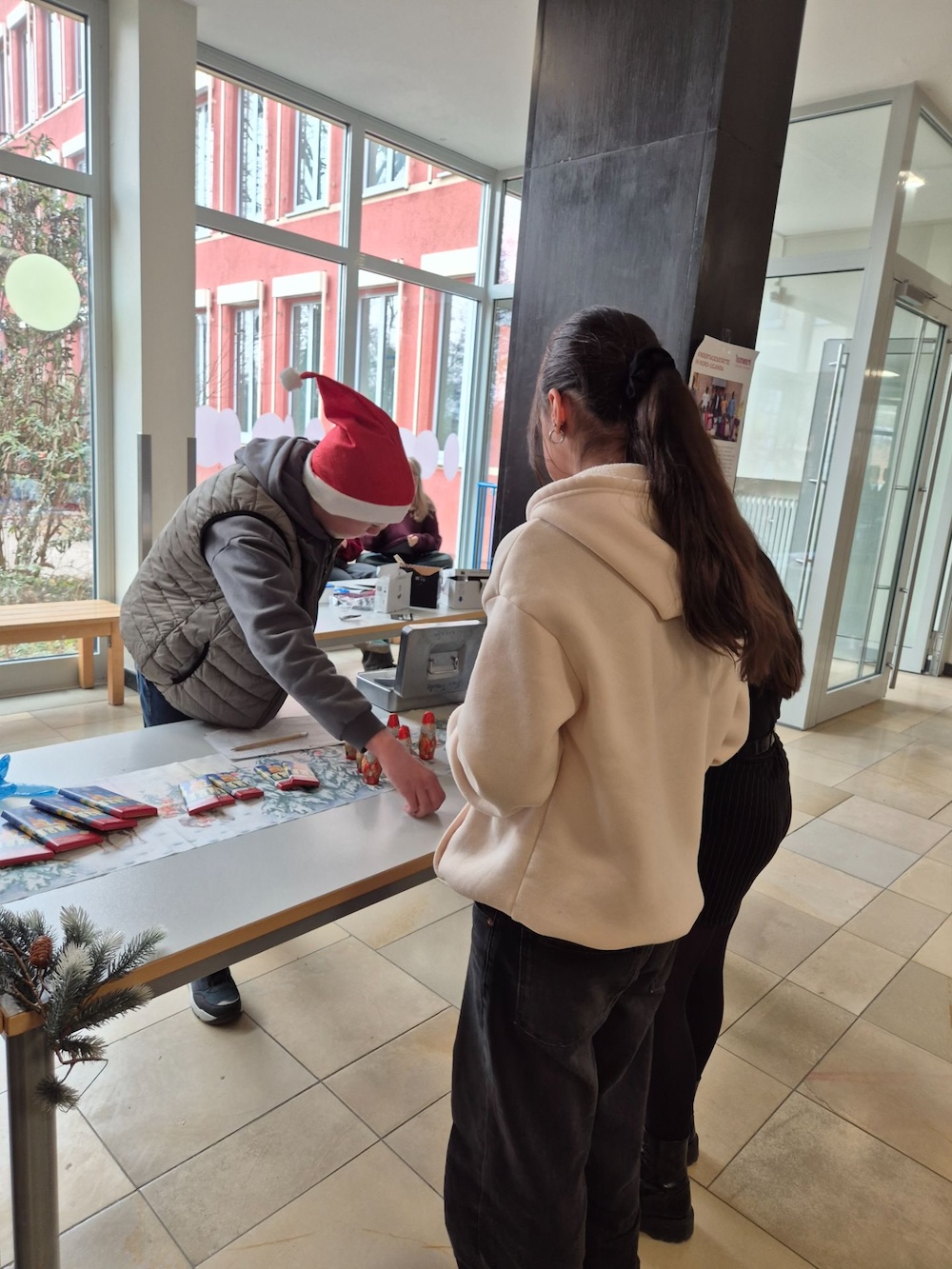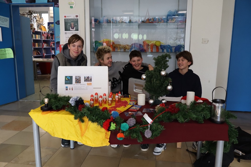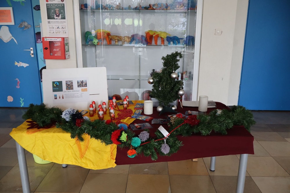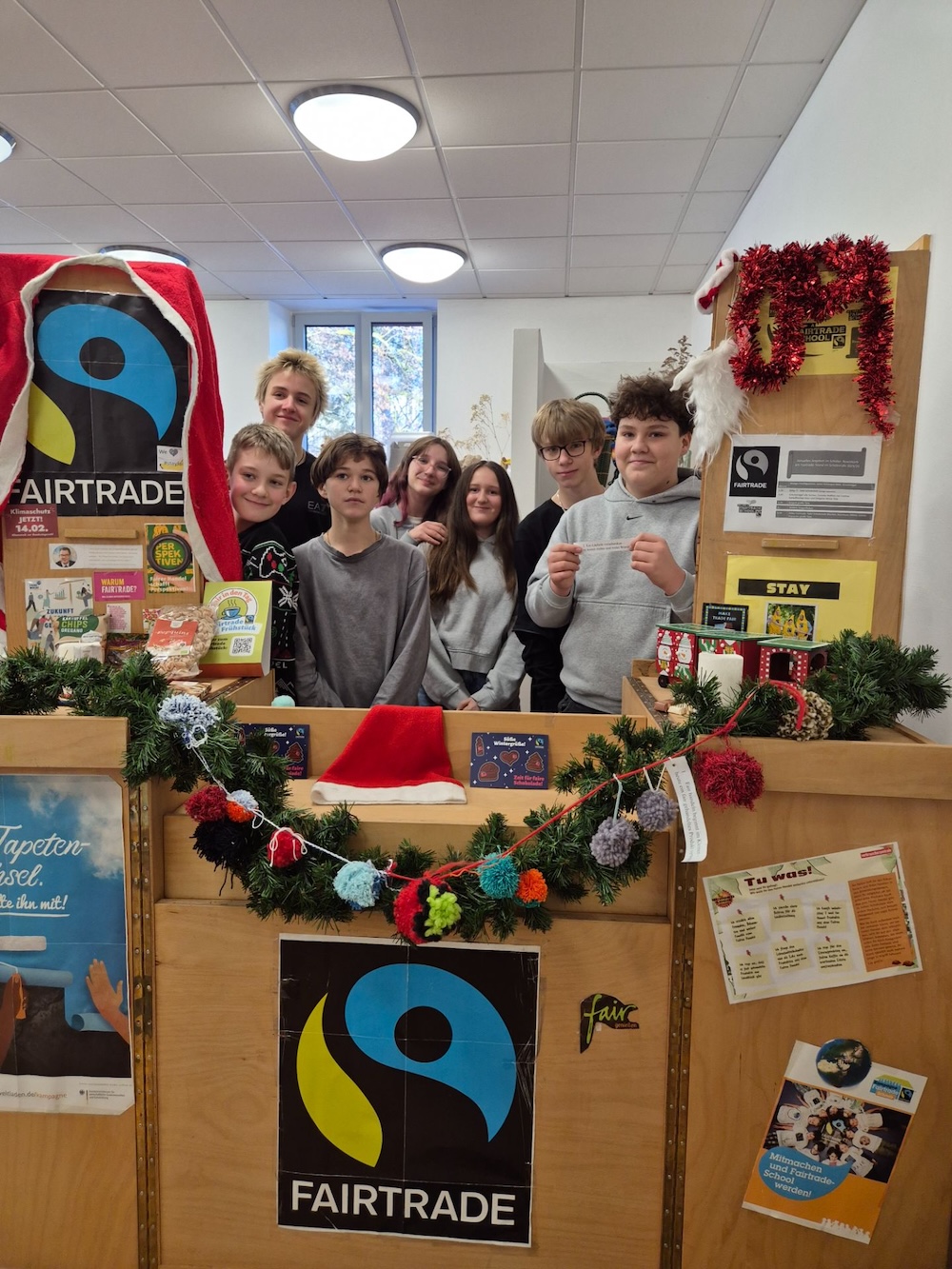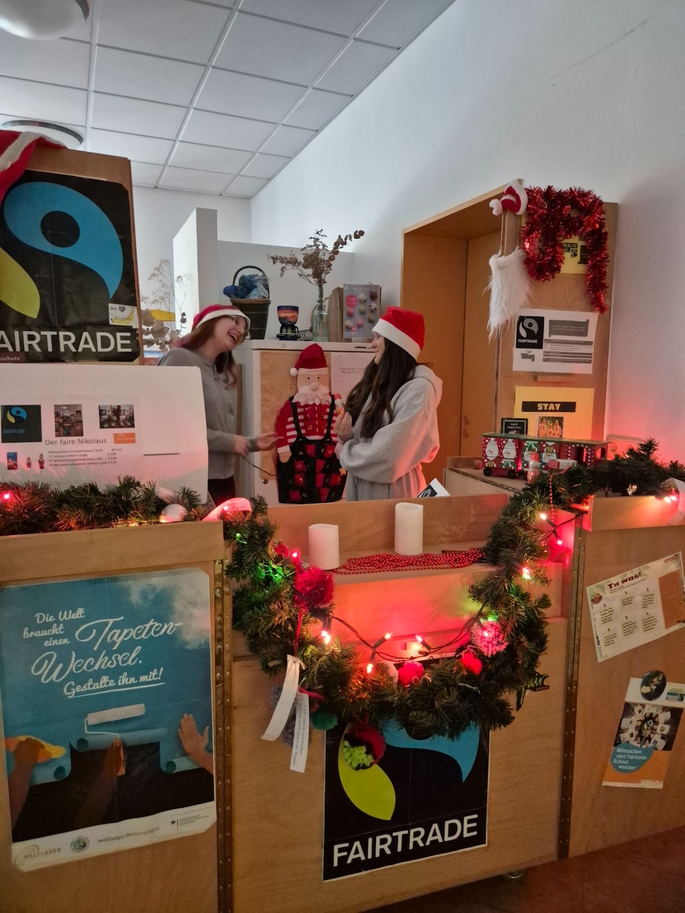 In der Adventszeit heißt es bei uns: genießen und dabei Verantwortung übernehmen. Am liebevoll weihnachtlich geschmückten Fairtrade-Stand im Schülercafé und in der Aula gibt es Fairtrade-Weihnachtsmänner und köstliche Weihnachtsschokolade. Mit jedem Kauf unterstützt die Schulfamilie faire Arbeitsbedingungen und nachhaltige Produktion weltweit – eine kleine Geste mit großer Wirkung.