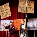 Das Thema Klimaschutz beschäftigt unsere Generation sehr, leider konnte uns das Theaterstück dennoch nicht restlos begeistern. An manchen Stellen war sehr viel Hintergrundwissen nötig und die verschiedenen parallel laufenden Handlungsstränge machten es außerdem nicht leicht, dem Stück durchgehend zu folgen. Nicht so recht glücklich waren wir auch über das offene Ende des Stücks, wir hätten uns gewünscht, dass die Geschichte noch weitererzählt wird. Andererseits kann man das offene Ende auch verstehen, da man ja nicht weiß, ob die Klimakrise gestoppt bzw. die Folgen des Klimawandels abgeschwächt werden können. Eine Sache ist unbedingt positiv hervorzuheben: Wir durften mit den Schauspielerinnen interagieren, indem wir bei einer Demonstration im Stück die neben unsere Sitze gesteckten Plakate hochhalten und so “mitdemonstrieren“ durften.