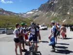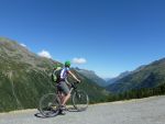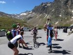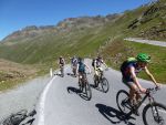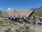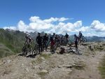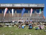 Nach einem „fixen“ Frühstück brachen wir auch schon zum Timmelsjoch auf. Wir bildeten hierfür zwei Gruppen, um die 1100 Höhenmeter effizient bewältigen zu können. Schon nach einigen Metern überholten wir ein weiteres P-Seminar Transalp, diesmal aus Rosenheim. Das sollte nicht das letzte Mal sein, dass wir sie überholten. Als wir das Timmelsjoch, den höchsten Punkt der gesamten Transalp erreichten, war die Freude groß. Wieder vereint folgte hierauf eine rasante Abfahrt durch Tunnel, Passstraßen und steile Trails. Nach einer verschwitzten Mittagspause und einem weiteren 160 Höhenmeter Anstieg rollten wir am Fluss entlang Meran entgegen. Als rasende Staubwolke überholten wir noch einmal die Rosenheimer, die wohl eine leichtere Abfahrt gewählt hatten. Benebelt von unserer Geschwindigkeit verpassten wir unsere Abfahrt und rumpelten in eine Feldweg... Wieder auf dem richtigen Track überholten wir erneut die überraschten Rosenheimer, um kurz darauf mit 67 km auf dem Tacho entspannt den Abend in Meran mit Eis und Pizza zu beenden.