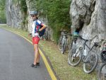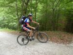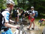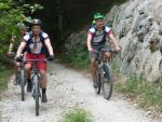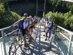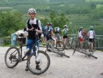 Der fünfte Morgen kann wohl als der härteste aufgefasst werden: Wir mussten bereits um sechs Uhr aufstehen und nur mit Plätzchen und Croissants im Bauch den anstrengendsten Tag beginnen. Nach einem 25 km langem Einrollen erreichten wir DEN Anstieg der Tour. 800 "bocksteile" Höhenmeter hatten wir zu bewältigen. Wir rasten den Hang hinauf und trieben einige andere Transälpler vor uns her und in den Wahnsinn. Dann ging es auch schon wieder hinab - über Andalo und den Lago di Molveno rollten wir unserem Ziel entgegen. Fiese Zwischenanstiege bremsten uns nicht: Die Euphorie trieb uns an. Wir durchquerten die wunderschöne Schlucht des Sarcatals. Kurz vor knapp überraschte uns jedoch noch der einzige Schauer unserer gesamten Alpenüberquerung. Wir überbrückten diesen mit Limo und Cappuccino und knackten kurz darauf die 100 Kilometermarke. Als wir schließlich den See erreichten, konnte sich niemand mehr halten und wir rannten in voller Montur in den Gardasee. Die letzte Etappe zählte also 106 Kilometer und 1350 Höhenmeter.