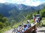 Der Tag startete mit einem wie durch ein Wunder gedeckten Tisch. Nach 10 Minuten mussten wir allerdings feststellen, dass es kein Wunder war, sondern eine übel gelaunte Frau mittleren Alters. Dieser Mitgast musste für ihr Grüppchen nun ein neues Plätzchen suchen... Nach einem gemächlichen Einrollen erreichten wir die Area 47. Nun, wie könnte es anders sein, Herr Haggenmüller ließ mal wieder den Lehrer raushängen und klärte uns über die ökonomischen und ökologischen Aspekte dieses Freizeitparks auf. Nach 55 Kilometern und 1100 anstrengenden Höhenmetern mussten wir noch einen kräftezehrenden Trail hinter uns bringen. Ab der Hälfte des Weges konnten wir uns jedoch über die Begleitung eines weiteren Transalp-Seminars freuen, es waren Münchner, von denen wir aber leider erfahren mussten, dass sie keine Transalp zustande gebracht hatten. Für sie war Zwieselstein also bereits Endstation, für uns nur ein weiterer Übernachtungsstopp. In den Praxmarer Appartements ließen wir den Abend nach gemeinsamem Einkaufen und Kochen mit lustigen Werwolfsspielchen ausklingen.