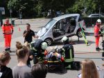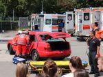 Abschluss dieses eindrucksstarken Vormittags bildete eine große Einsatzübung von Feuerwehr und Rotem Kreuz an der Feuerwache. Dort konnten die Schüler hautnah bei einem simulierten Verkehrsunfall miterleben, wie die Rettungskräfte um das Leben von den Verunglückten kämpfen, wie präzise jeder Handgriff sitzen muss und wie reibungslos die Zusammenarbeit bei solchen Einsätzen funktioniert.