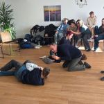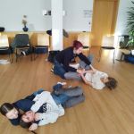 Mit viel Energie und Spielfreude, die sich u.a. in den vielen lustigen und turbulenten Spielsituationen deutlich zeigte, entstand eine schon recht fortgeschrittene Version unseres Stücks „Durst nach Krieg?“, das wir im Rahmen der Fantast:k-Woche im Stadttheater aufführen werden. Unser Stück entwickelte sich zum einen aus der Motto-Vorgabe dieser Woche, „Laut für den Frieden“ und zum anderen und wesentlich größeren Teil aus den Ideen und Wünschen aller Beteiligten, sodass wir uns nun einer postapokalyptischen Welt befinden, in der auf absurde und komische Weise ein Weg gefunden werden will, in Frieden miteinander zu leben. Was Durst und Hobby-Horsing, Gemüsebeleidigungen oder das Machtstreben einzelner Männer und Frauen damit zu tun haben, kann an dieser Stelle noch nicht verraten werden, nur so viel, dass das eigentlich doch ernsthafte Thema durchaus auch komische Seiten hat. Begleitet hat uns auf dieser Fahrt und bei unserer Reise in die postapokalyptische Welt mit viel Wein und Wasser, aber ohne Nagellack wieder Herr Dr. Dieter – vielen Dank dafür!