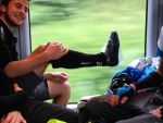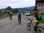 Am Sonntag trafen wir uns wieder um 8:15 Uhr. Diesmal aber nicht an der Schule, sondern am Bahnhof, da wir geplant hatten, mit dem Zug nach Haslach zu fahren und von dort aus unsere Tour zu starten. Die Motivation war nicht ganz so groß wie am Vortag, da es aus Kübeln schüttete und die meisten schon nass waren, als sie am Bahnhof ankamen. Dennoch war die Stimmung gut und wir stiegen gemeinsam mit unseren Rädern in den Zug. Nach ungefähr einer halben Stunde Zugfahrt kamen wir in Haslach an, wir fuhren ein Stückchen am Grüntensee entlang und gelangten nach ungefähr 45 Minuten an einen Parkplatz, auf dem wir uns auf eine längere Steigung vorbereiteten. Vor uns lagen ungefähr 500 Höhenmeter, die wir am Stück zu meistern hatten. Wir kamen an der Alpe Untere Reuterwanne vorbei und fuhren weiter zur Oberen Reuterwanne. Dort suchten wir an der Hauswand der Alpe Schutz vor dem Regen, der die ganze Fahrt über leider nicht aufgehört hatte. Wir aßen eine Kleinigkeit und zogen uns alle sehr warm an, da nun die Abfahrt auf uns wartete und wir alle nass und durchgefroren waren. Unten angekommen wartete eigentlich noch ein zweiter großer Anstieg auf uns, da wir, wie am Vortag, wieder ungefähr 1300 Höhenmeter fahren wollten. Auf Grund des wirklich schlechten Wetters und der Tatsache, dass wir alle nass und kalt waren, entschieden wir uns dazu, die Tour an dieser Stelle abzubrechen und den Zug zurück nach Kempten zu nehmen und nicht wie geplant weiter zu fahren. Über diese Entscheidung waren vermutlich nicht nur die Schüler, sondern auch die Lehrer sehr froh. Dennoch wussten wir alle, dass jeder einzelne von uns weiter gefahren wäre, wenn es drauf angekommen wäre. Wir fuhren zurück zum Bahnhof, wo der Zug wenige Minuten später eintraf und uns, mit unseren Rädern zurück nach Kempten brachte.
