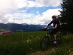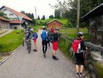 Am Samstag, den 18. Juni trafen sich die Schüler und Lehrer des P-Seminars Transalp schon um 8:15 Uhr mit ihren Mountainbikes an der Schule um eine Probetour für die baldige Alpenüberquerung zu machen. Nachdem wir die bevorstehende Route kurz besprochen, unsere Rucksäcke aufgesattelt und uns auf unsere Fahrräder geschwungen hatten ging es auch schon los Richtung Niedersonthofen. Vor uns lagen circa 68 Kilometer und 1300 Höhenmeter. Wir waren alle total motiviert und sehr froh, dass das Wetter mitspielte und keine Gewitter für diesen Tag angesagt waren. Kurz vor Niedersonthofen gab es dann auch schon den ersten platten Reifen, den Frau König mit Hilfe einiger Schülern aber schnell wieder flicken konnte. Danach ging es weiter nach Gopprechts, wo wir unsere erste kurze Pause in einem kleinen Bushäuschen einlegten und uns mit ein Paar Snacks für die weitere Fahrt stärkten. Anschließend fuhren wir über Reute nach Diepolz und von dort aus nach Missen. Dort angekommen wartete der längste Anstieg dieser Tour auf uns: wir fuhren über die Thaler Höhe zur Pfarralpe, wo wir von einigen Kühen mehr oder weniger freundlich begrüßt wurden. Wir kehrten dort ein und ließen uns ein Paar Würstchen oder einen Kuchen schmecken. Danach ging es aber auch wieder weiter, denn vor uns lagen noch einige Kilometer. Die Abfahrt in Richtung Knottenried führte uns dann durch einen Wald, der auf Grund des tagelangen Regens sehr schlammig war und dafür sorgte, dass wir und vor allem unsere Räder voll mit Matsch bedeckt waren. Wir fuhren weiter zurück nach Gopprechts, von da aus wieder nach Niedersonthofen, Waltenhofen und heimwärts nach Kempten. Am Abend fielen wir alle müde und kaputt, aber auch stolz und zufrieden sehr früh in unsere Betten, um am nächsten Tag wieder fit genug für die nächste Tour zu sein.