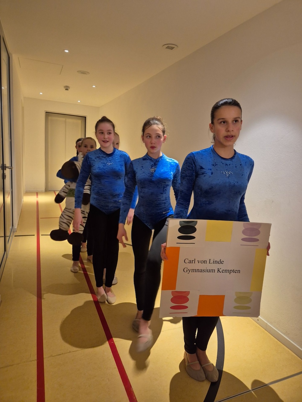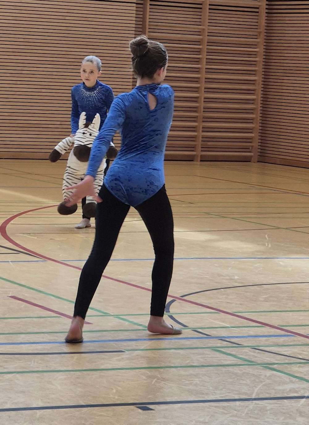 Mit viel Engagement und großer Vorfreude nahm unser Schulteam am Bezirksfinale der Rhythmischen Sportgymnastik im Rahmen des Schulsportwettbewerbs „Jugend trainiert für Olympia“ teil. Die lange Vorbereitungszeit auf den Wettkampf, auch außerhalb der regulären Schulzeit, verlangte den Schülerinnen viel Konzentration, Disziplin und Teamgeist ab. Ziel war es, die Bewegungsabläufe nicht nur zu präzisieren, sondern möglichst harmonisch und ausdrucksstark zu präsentieren.