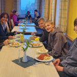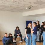 Dafür haben wir uns am 10. und 11.03.2025 im „Haus der Familie“ oberhalb des Niedersonthofener Sees einquartiert und intensiv an Sprechlautstärke, Körpersprache und v.a. am Zusammenspiel gearbeitet. Dabei stellte sich heraus, dass das Stück, wenn man es ohne Text in der Hand, also „auswendig“ spielt, doch mehr Fallstricke hat als zuerst gedacht. Wie inszeniert man geschickt eine Prügelei oder eine Kussszene, wie eine Überdosis? Wer muss wann wo stehen, damit er vom Publikum gesehen und gehört wird? Bei bis zu 27 Schauspielerinnen und Schauspielern gleichzeitig auf der Bühne ist das gar nicht so einfach. Und wenn diese dann noch auf einer Party mit viel Musik tanzen, wird es ganz schnell ganz unübersichtlich. Die Gruppe wurde es aber nicht müde, gerade die schwierigen Passagen wieder und wieder zu spielen, sodass die Abläufe nun schon richtig gut sitzen. Und ganz nebenbei hatten wir natürlich eine Menge Spaß bei unseren Aufwärm- oder Abendspielen, wurden bestens versorgt und konnten die zwei Tage voll und ganz genießen.