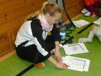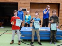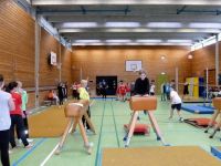 Nach einem allgemeinen Aufwärmen verteilten sich zunächst alle 6. Klässler, dann alle 5. Klässler in Riegen an die unterschiedlichen Geräte. In drei Disziplinen wurden die besten Turner und Turnerinnen der Schule ermittelt und mit einem großen goldenen Osterhasen belohnt. Doch auch die Anstrengungen aller anderen Schüler wurden anerkannt- alle Teilnehmer durften sich zum Schluss einen kleinen goldenen Osterhasen mitnehmen.