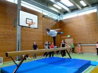 Am letzten Schultag vor den Osterferien war es soweit. Schüler und Schülerinnen der 5. Und 6. Jahrgangsstufe hatten sich die vorangegangenen Sportstunden fieberhaft auf den internen Schulwettbewerb vorbereitet. Aus einem, von der Sportfachschaft erstellten Turnkatalog hatten die Schüler sich selbständig Auf- und Abgänge sowie Mittelteile verschiedener Schwierigkeitsgrade ausgewählt, zu einer Übung zusammengestellt und geübt.
