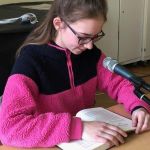 Dass der ganze Saal gebannt zuhörte, lag vor allem auch an den spannenden Büchern, die sich die Vorlesenden ausgesucht hatten. Lina Stadelmann (6a) trat mit einem Klassiker von Astrid Lindgren an und las eine Stelle aus „Mio, mein Mio“ vor. Anschließend begaben sich alle mit Julian Gevers (6b) und dem Buch „Gespensterjäger“ von Cornelia Funke auf ein geisterhaftes Abenteuer. Aaron Frey (6c) las aus einem Fantasy-Roman von R.L. Ferguson, „Die Schule der Alyxa“, und durch die Leserin Marieluise König (6d) fanden sich plötzlich alle in der Handlung von „Der Zauberstein von Brisingamen“ von Alan Garner wieder.