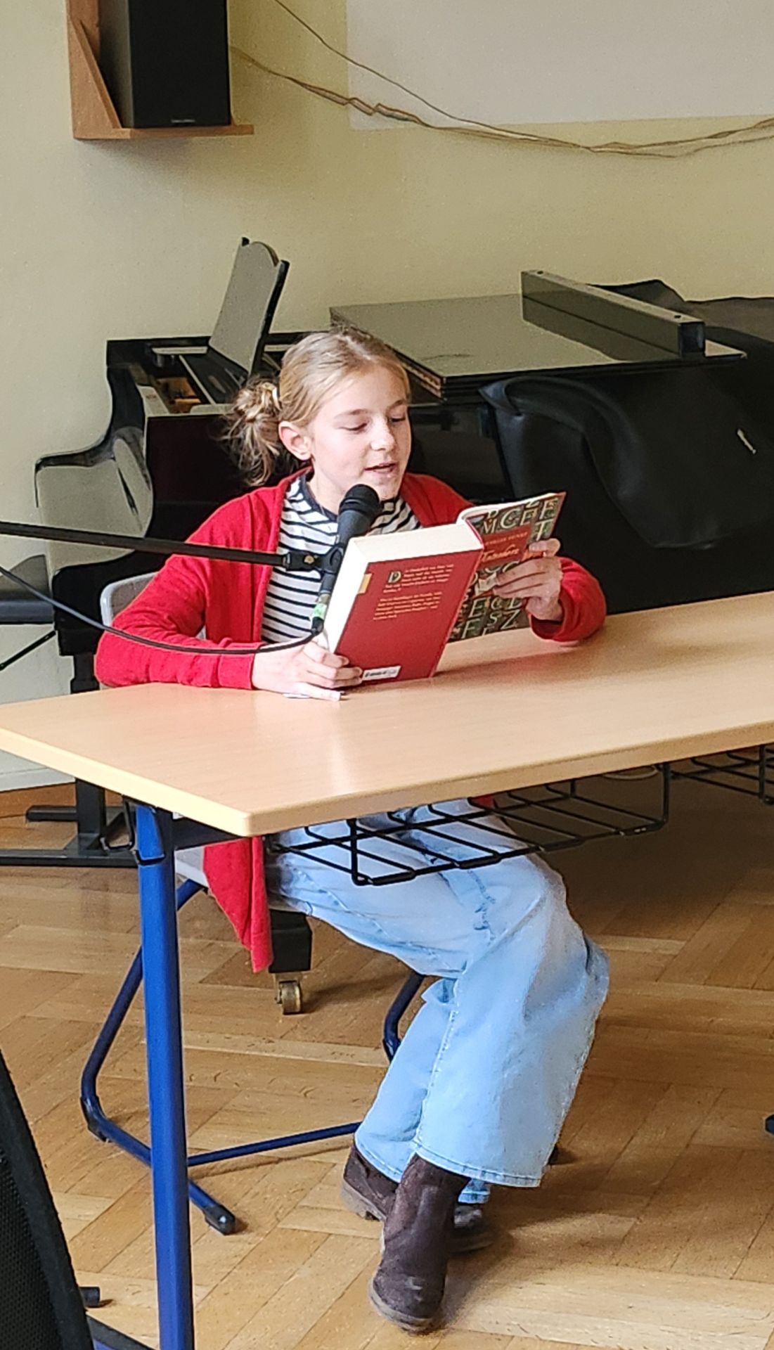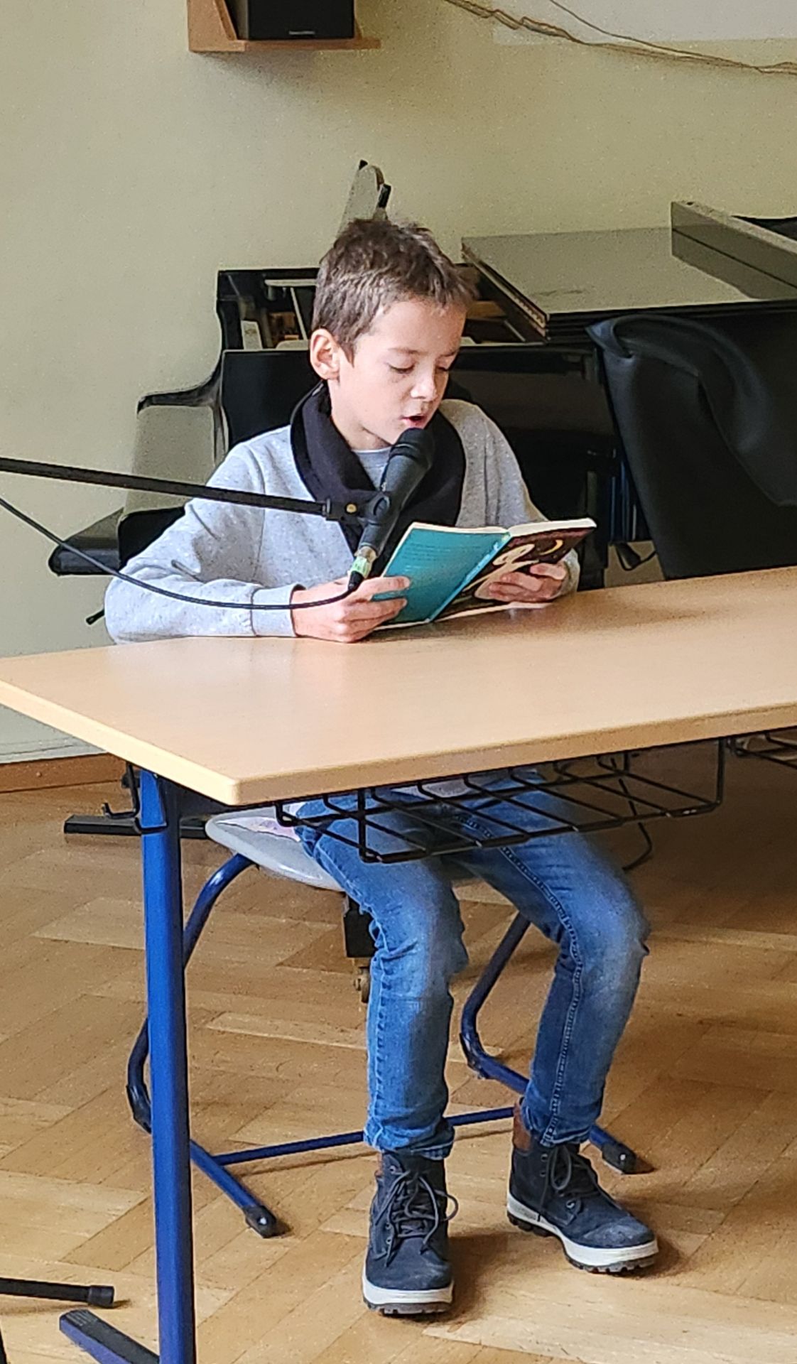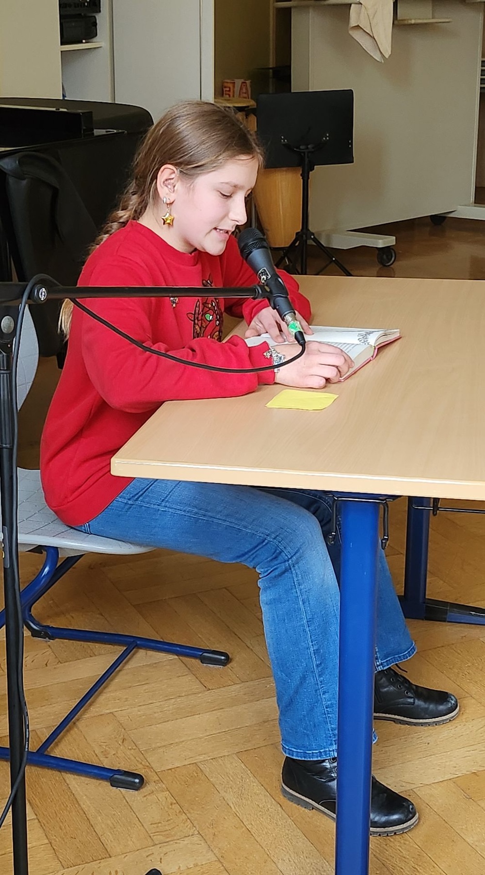 Valentin entführte das Publikum mit einem Auszug aus „Das kleine Gespenst“ von Otfried Preußler in die Welt eines neugierigen Schlossgespenstes, Magdalena sorgte mit einem Ausschnitt aus Cornelia Funkes „Tintenherz“ für Spannung und Fantasie und Laura präsentierte einen Abschnitt aus „Die Schule der magischen Tiere 24“, der die Zuhörerinnen und Zuhörer in den besonderen Schulalltag mit tierischen Begleitern eintauchen ließ.