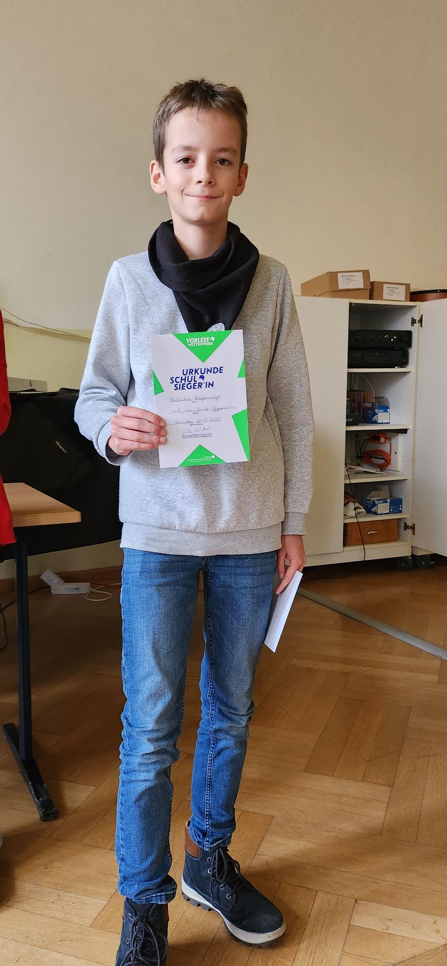 Zum Schluss wurde es noch einmal richtig aufregend: Valentin Hafenmayer aus der 6a wurde als Schulsieger des diesjährigen Wettbewerbs verkündet und darf nun unsere Schule beim Stadtentscheid vertreten. Wir gratulieren herzlich – und drücken schon jetzt die Daumen für die nächste Runde!