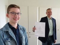 Felix Brack (9b) bekam heute von Herrn Brücklmayr persönlich (aber mit dem gehörigen Abstand) seine Urkunde im Bundeswettbewerb Fremdsprachen überreicht...